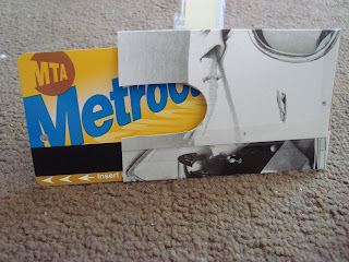 I mentioned the other day how at the Maker Faire they had a demonstration on how to make a MetroCard holder, but it was really more an infomercial for a set of tools (large punch, adhesive machine, laminator, etc). However I liked the idea and new it could be done with things I had in my apartment. Well this week my old holder, which I had gotten for free at this arts festival from the Whitney Museum booth approximately 3 years ago, completely came apart.